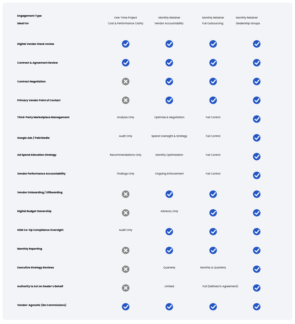 If you’re evaluating marketing performance, questioning current direction, or preparing for change, we’re ready to talk. Our initial conversations are designed to understand your challenges, not sell a package — and to determine whether our approach is the right fit.